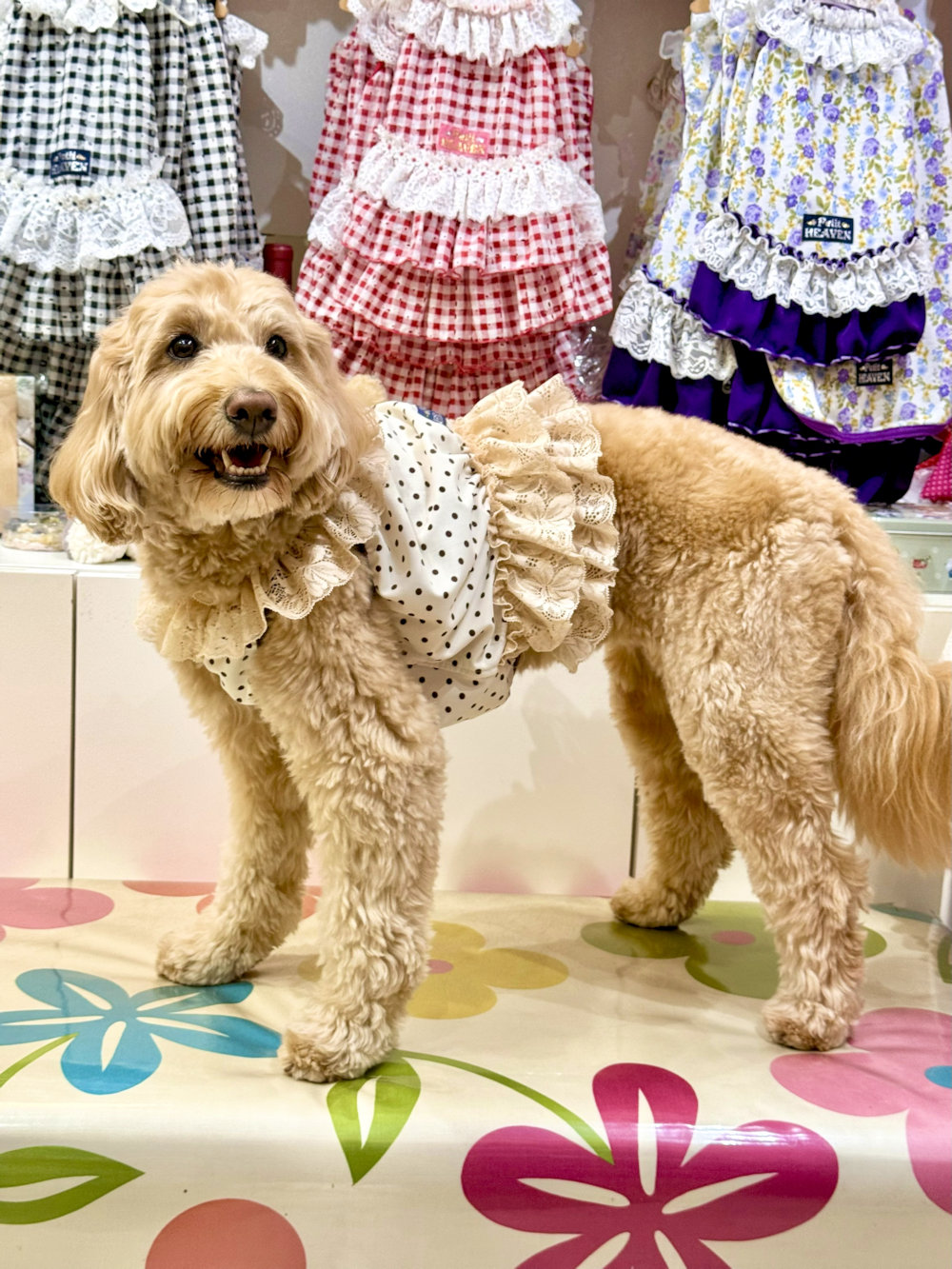 Petit Heaven の商品は小型犬・中型犬・大型犬までの11サイズ。 国産の布地・糸を使用し、1点1点全て手作りで製作しております。 サイズ&デザイン変更などのオーダーも可能。 ご相談くださいませ☆